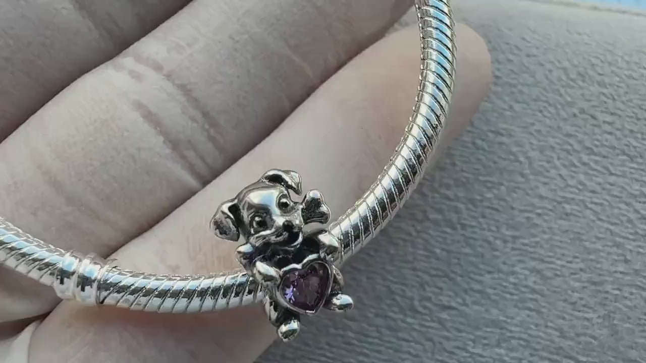 Cute Dog Heart Charm for Bracelet